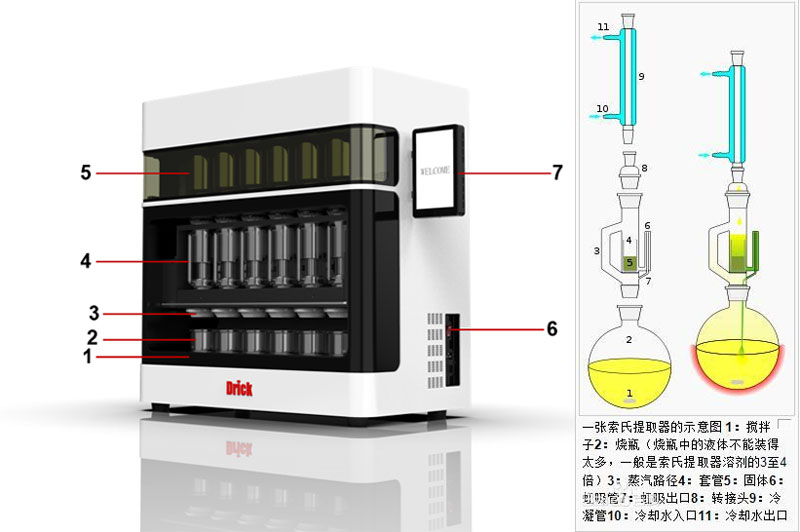 脂肪測定儀萃取前先將固體物質研碎,以增加固液接觸的面積。然后,將固體物質放在濾紙包內,置于提取器中,提取器的下端與盛有浸...